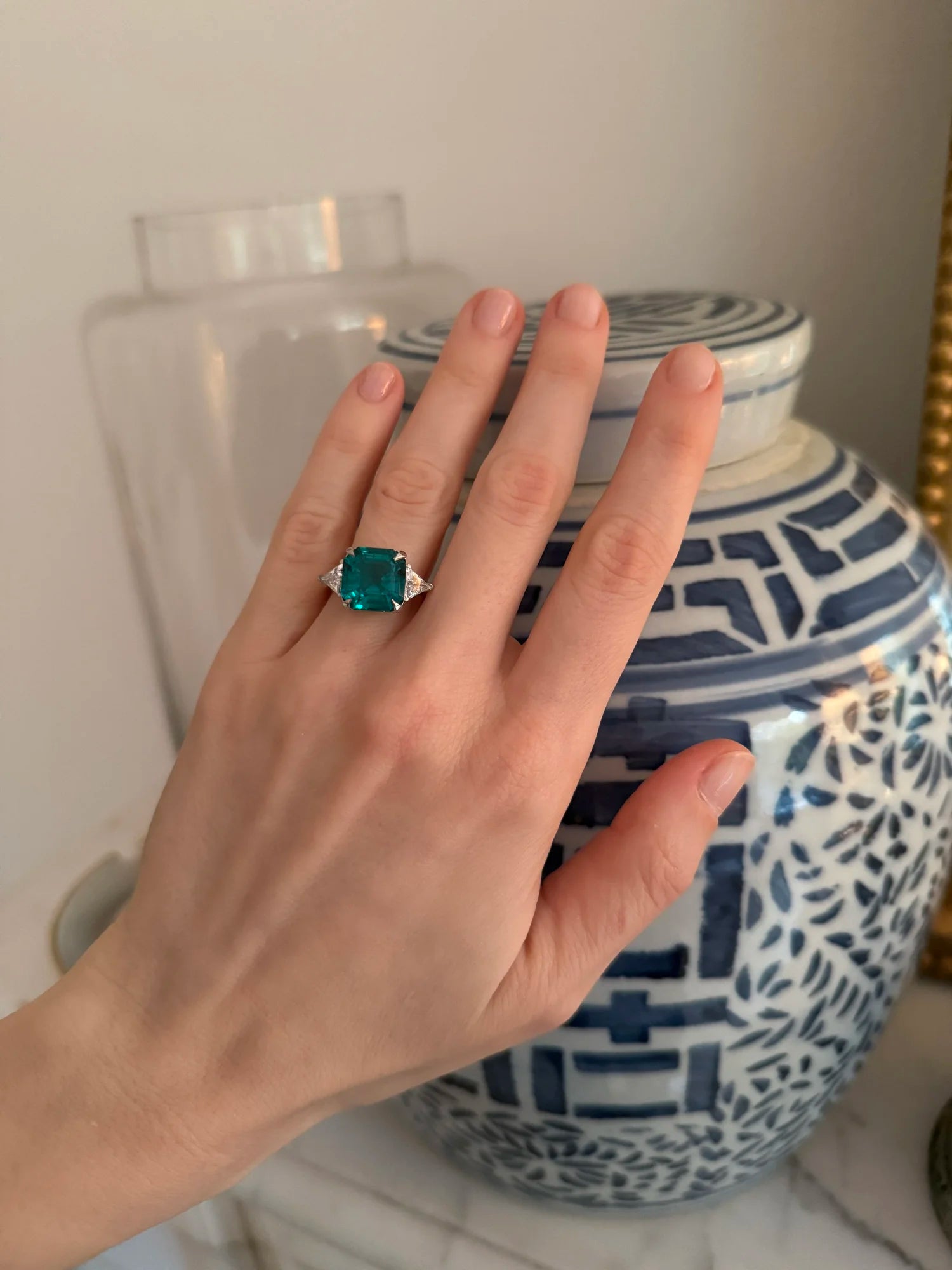 •5ct Lab Grown Emerald (approx) • 1ctw Lab Grown Diamonds • Emerald Center Stone Approx 10mm x 10mm • Emerald Quality...