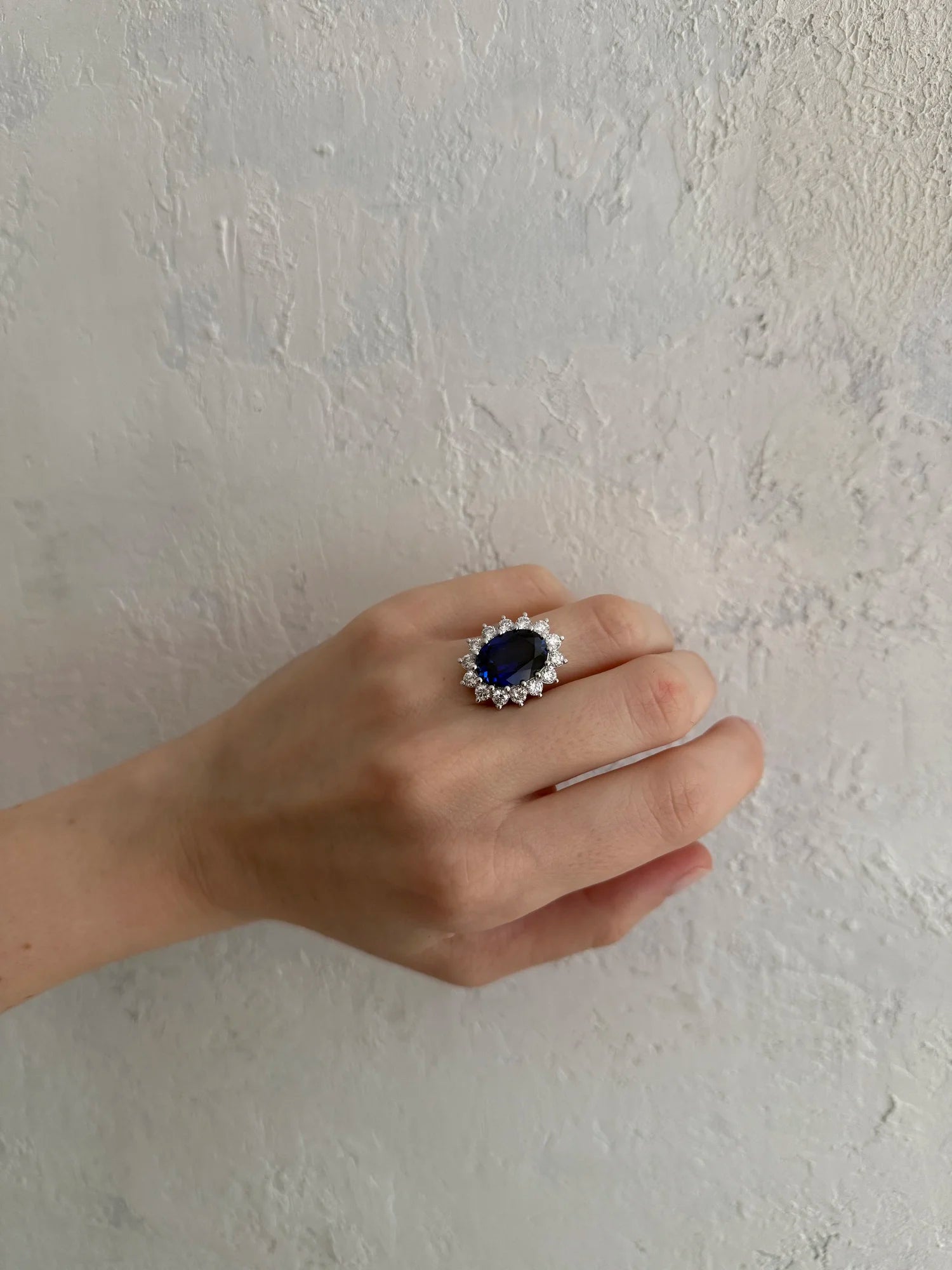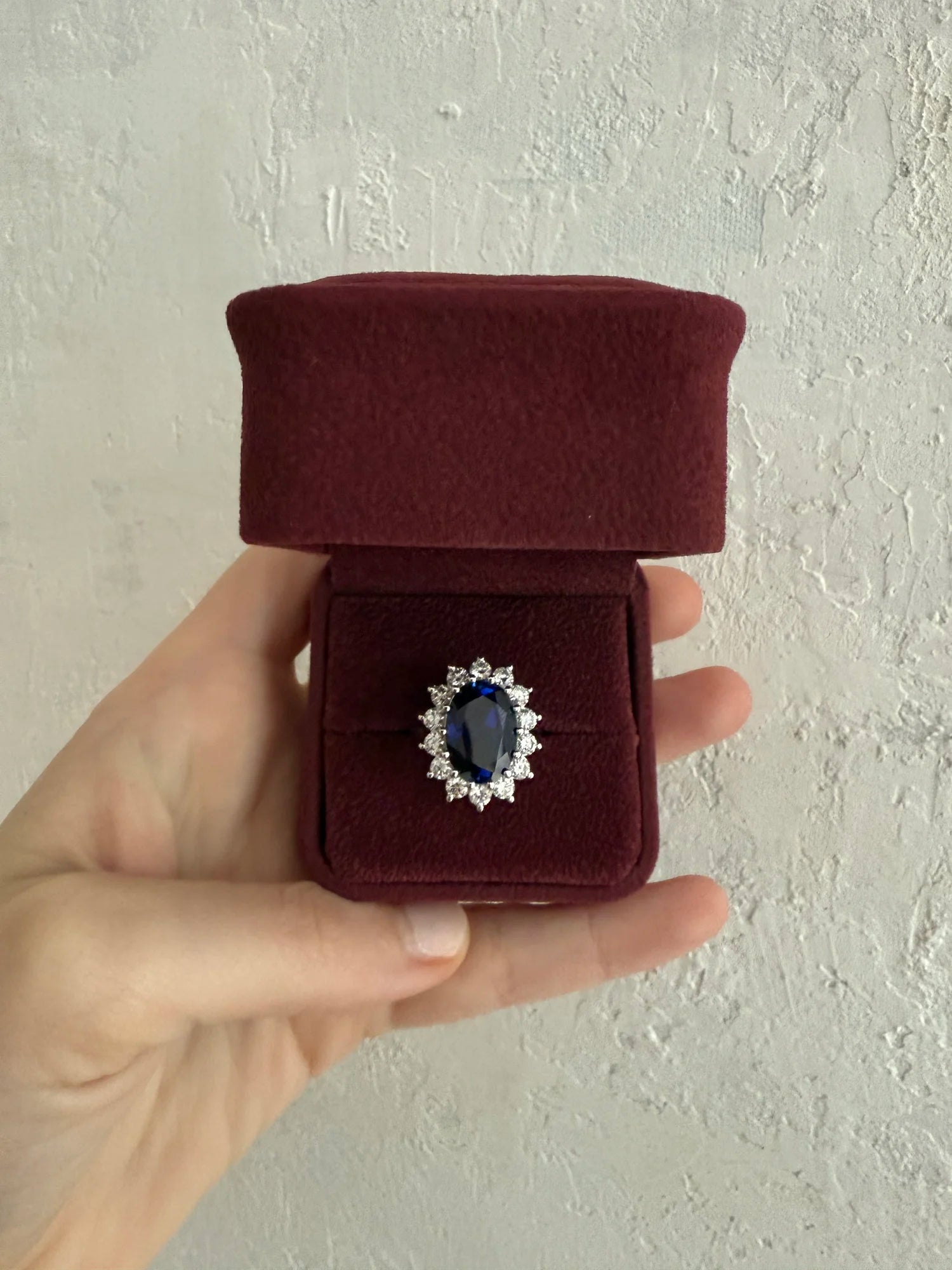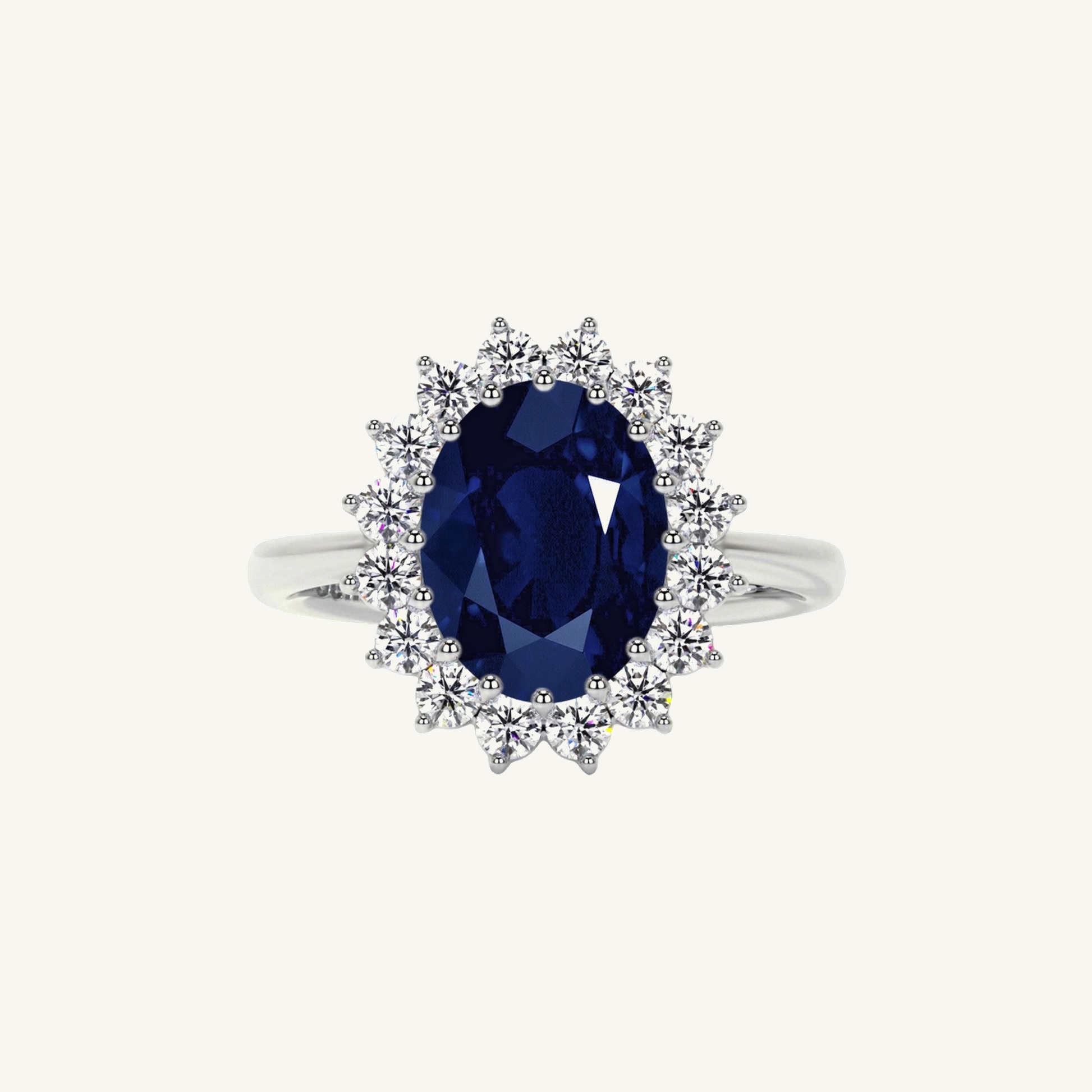 •7ct Lab Grown Sapphire • 1.5ctw Lab Grown Diamonds • Sapphire Center Stone Approx 14mm x 10mm • Sapphire Quality AAA...